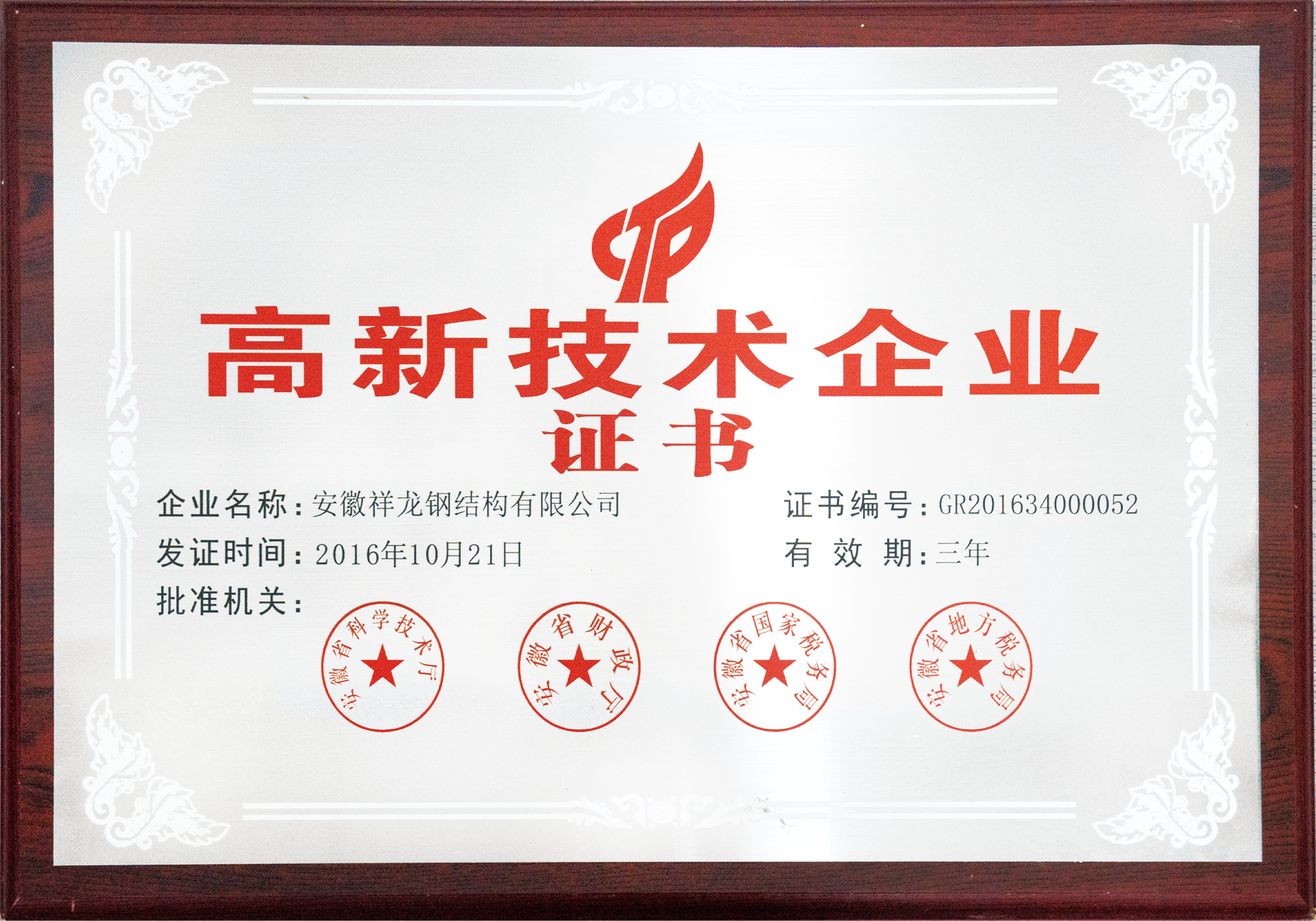高新技術(shù)企業(yè)證書